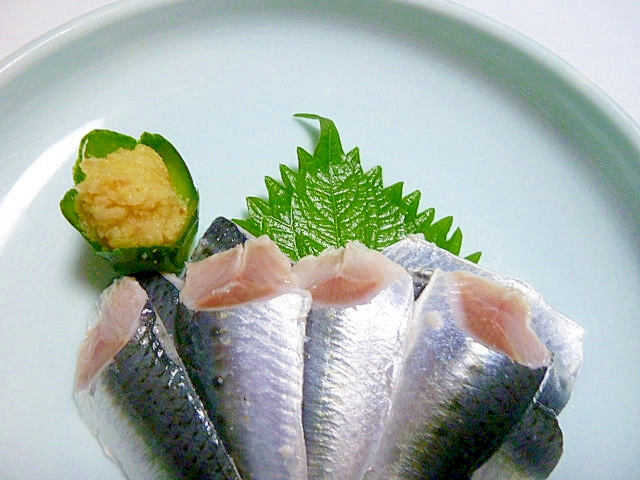 ちなみに、刺身で食べる時は、8の後に皮を剥く。 2 いわしの保存(冷蔵の場合) 前述のように、買ってきてすぐに水洗い(魚の内臓や血合いをとって水で洗い、水気をしつかり拭き取っておくこと)をしておけば、冷蔵庫で2日〜3日は保存できる。 調理いわしは頭・内臓・骨を取りのぞき、塩を両面にふって約30分間おき、水洗いして水気をふき取ります。 バットに酢・みりんを合わせ、(1)を10分以上漬けます。 皮をむいてそぎ切りにし、大葉・せん切りにしたしょうがを添えて器に盛ります。 酢にみなさん、お元気ですか! 今日は早速速報という形で出させていただきました! 表題の通りいわしの刺身でアニサキス 症食中毒が発生しているという情報を得ました。 年5月1日津幡町内のスーパーマーケットで被害が出たとの